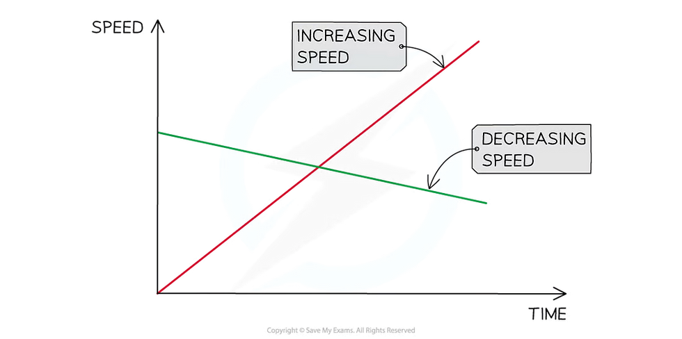 A steep slope means large acceleration (or deceleration) - i.e. the object's speed changes very quickly