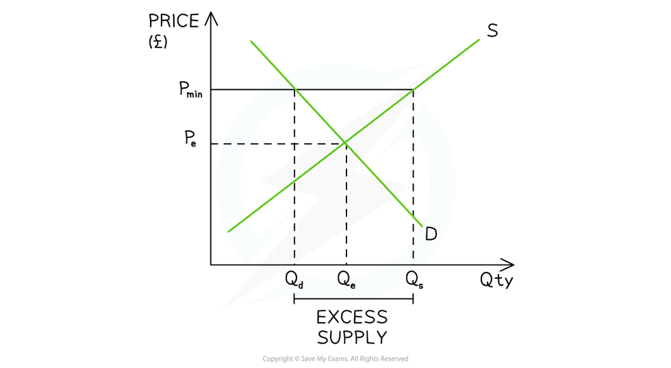 A minimum price is set by the government above the existing free market equilibrium price & sellers cannot legally sell the good/service at a lower price
